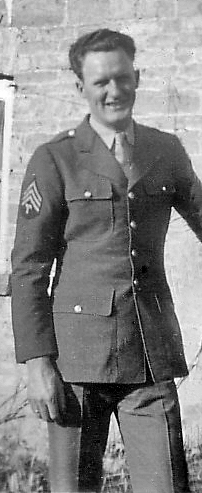 Of all their American soldier friends, this is the last one in the Preston family's photos to be identified. With no clearly identifiable insignia it's been difficult to tell which unit this U.S. soldier was part of, but the discovery that another soldier photographed with him in Sarsden was in the 38th Engineers made it likely he was too. The unit history of the 38th Engineer Regiment, (renamed in England and the E.T.O. as the 38th Engineer General Service Regiment) puts their Company B in Sarsden, Oxfordshire from 17th January to 23rd February, 1944, immediately before the men of the 6th Armored Division arrived there. Billets were available at Sarsden House, the hut field and in a barn loft. Some may have stayed on in the Preston's barn loft or may have gone with the rest of this company to live at nearby Over Norton Park tented camp which they were working on. It's also turned out, as we surmised, that this man was a cook in Company B. In a letter home, his friend Elbert, who is photographed with him (see Elbert Mann's photo page), describes meeting a fellow cook hailing from near his home town in Alabama. The letter was written from Sarsden soon after Elbert had joined Company B from Company F and may well refer to this Tec4 soldier. Given Elbert's small stature we can now deduce that his Tec4 friend was between 70 and 72 inches in height, not as tall as we'd first assumed. There appear to have been only four Tec4s in Company B at this time and from what we now knew it seemed the most likely candidate would be Hoyt Oliver from Alabama. A member of his wider family has confirmed that this photo is indeed of Hoyt. Hoyt survived the war and, mistakenly, I thought he lived at Haleyville, Alabama. He actually lived near Addison, AL but, sadly, he died in 1993. If you can tell us any more about Hoyt Oliver, or put us in touch with his immediate family, please let us know. (There's a "contact us" link at the top of this page.)